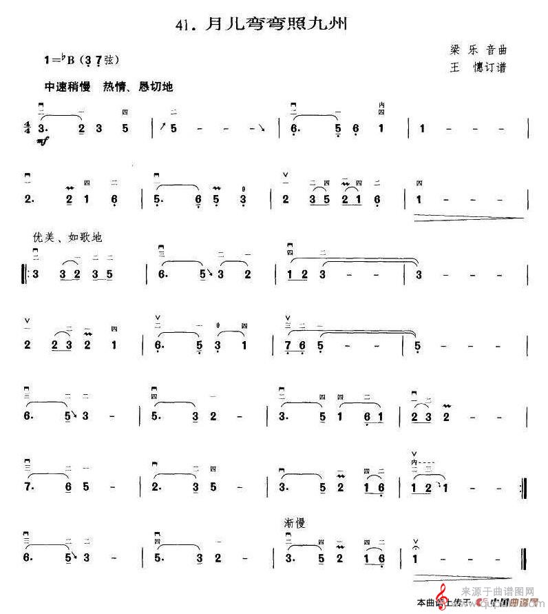 曲谱图网为您提供月儿弯弯照九州(月儿弯弯照九州二胡独奏简谱)找谱子,就上曲谱图网。