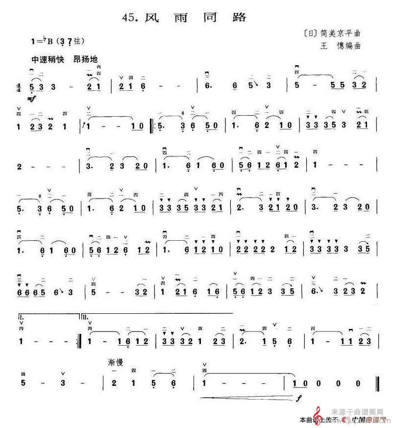 曲谱图网为您提供风雨同路简谱(风雨同路古筝钢琴竹笛二胡演奏版)找谱子,就上曲谱图网。