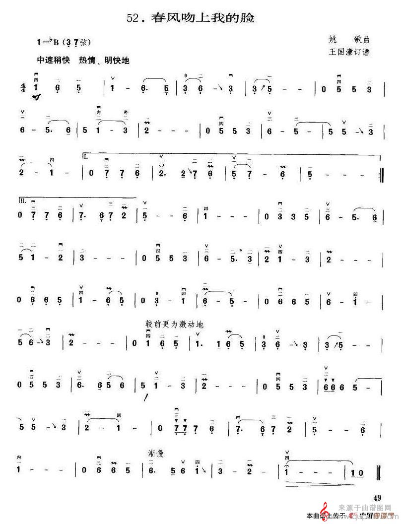 曲谱图网为您提供春风吻上我的脸(春风吻上我的脸萨克斯二胡独奏简谱)找谱子,就上曲谱图网。