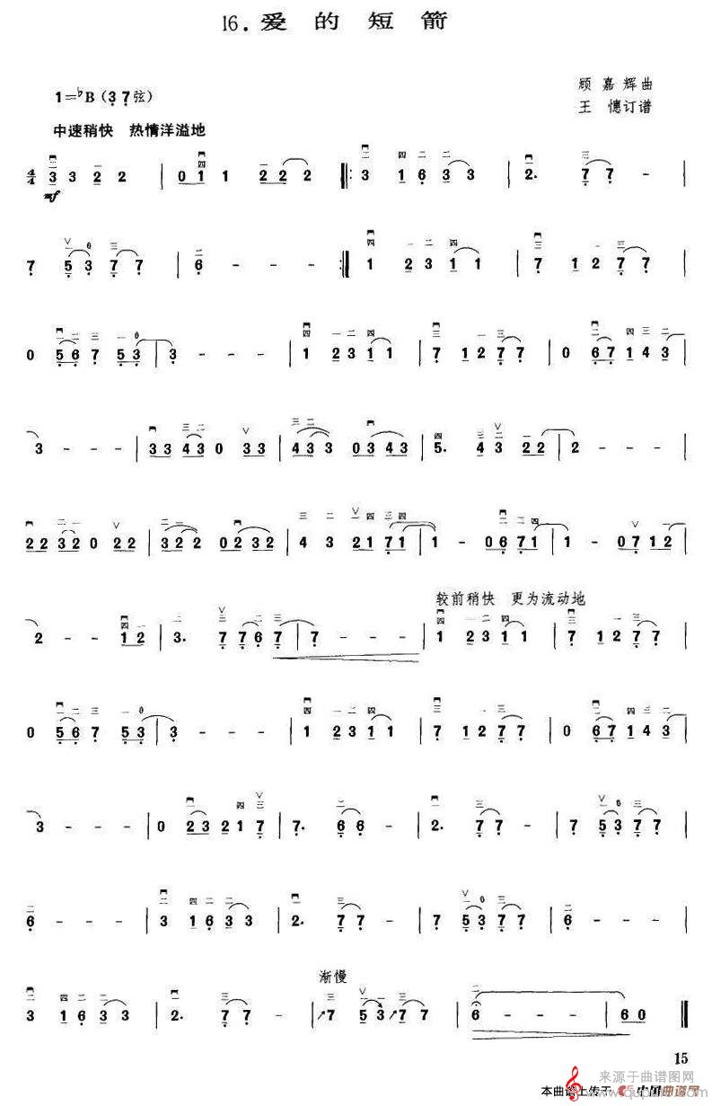 爱的短箭(爱的短箭二胡乐曲曲谱)