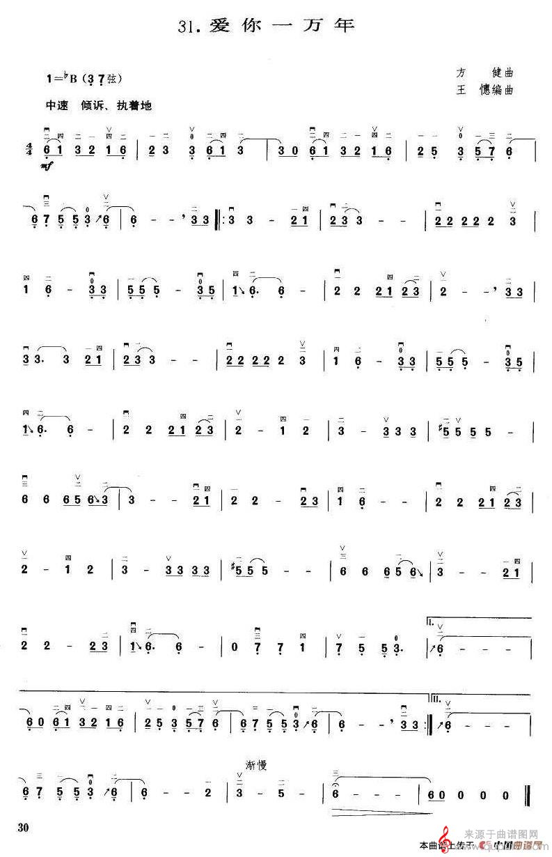 曲谱图网为您提供爱你一万年简谱(爱你一万年二胡独奏曲曲谱)找谱子,就上曲谱图网。
