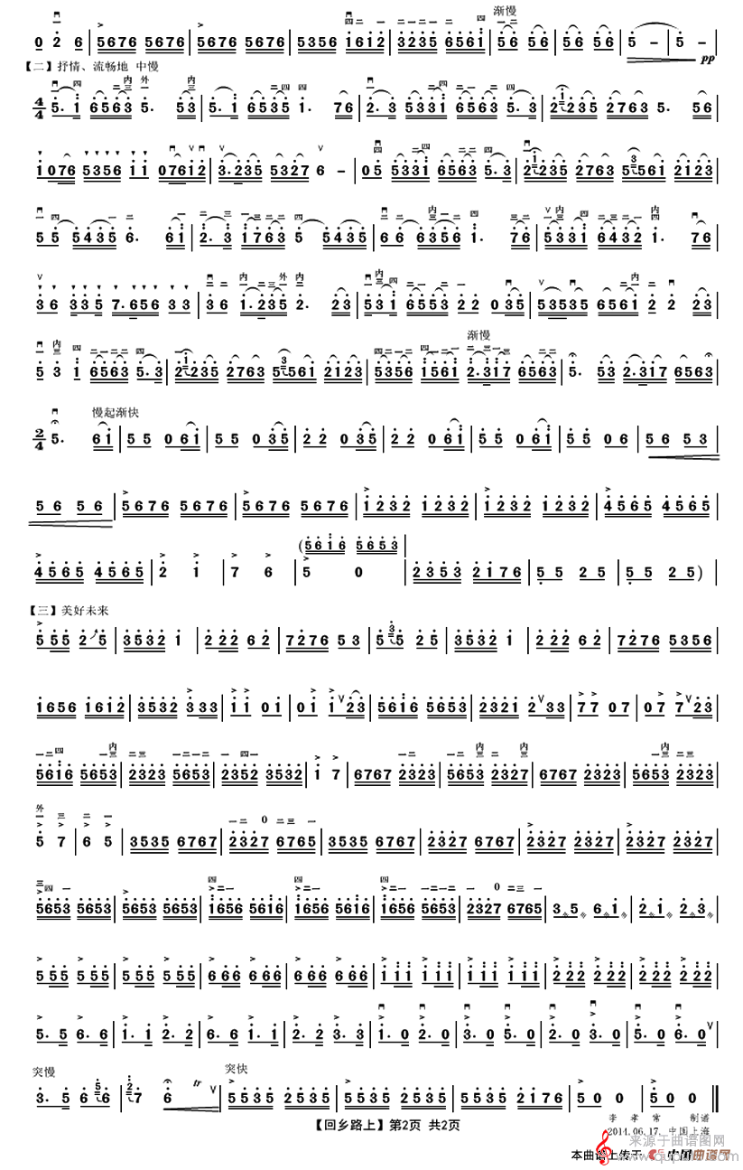 回乡路上(回乡路上二胡独奏简谱)