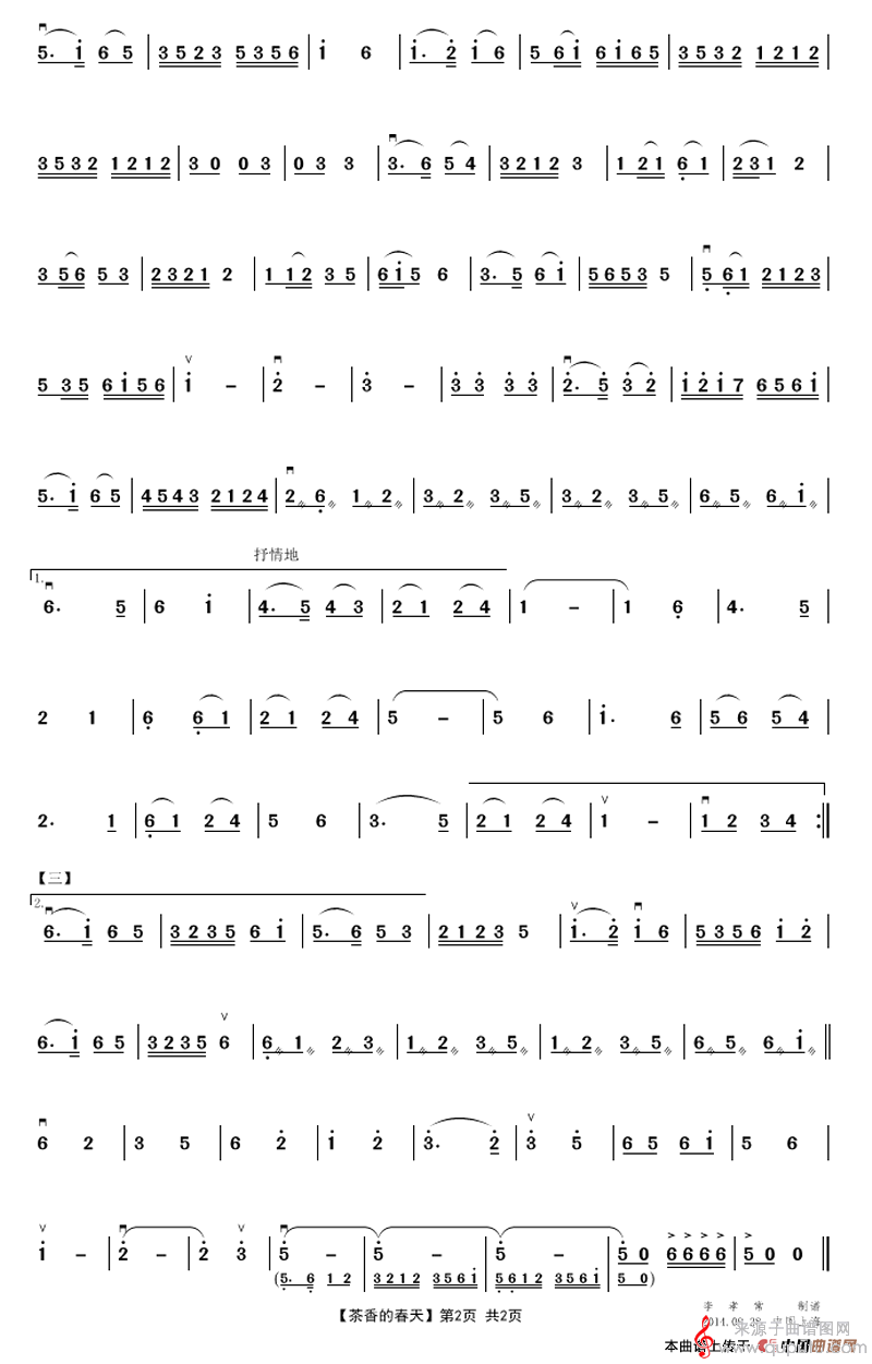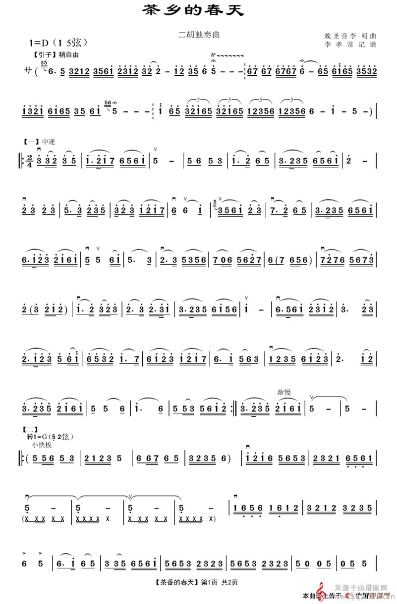 茶乡的春天简谱(茶乡的春天二胡独奏版)