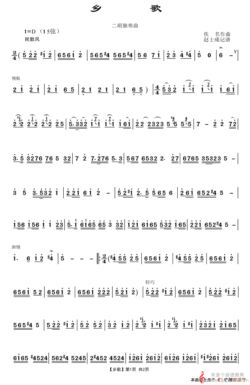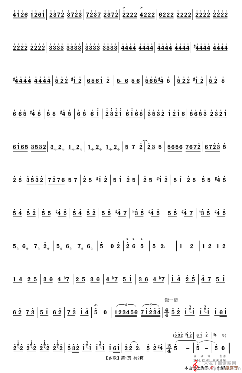 曲谱图网为您提供乡歌简谱(乡歌竹笛二胡独奏简谱)找谱子,就上曲谱图网。