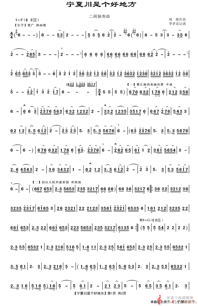 曲谱图网为您提供宁夏川是个好地方(宁夏川是个好地方胡琴乐器二胡独奏简谱)找谱子,就上曲谱图网。