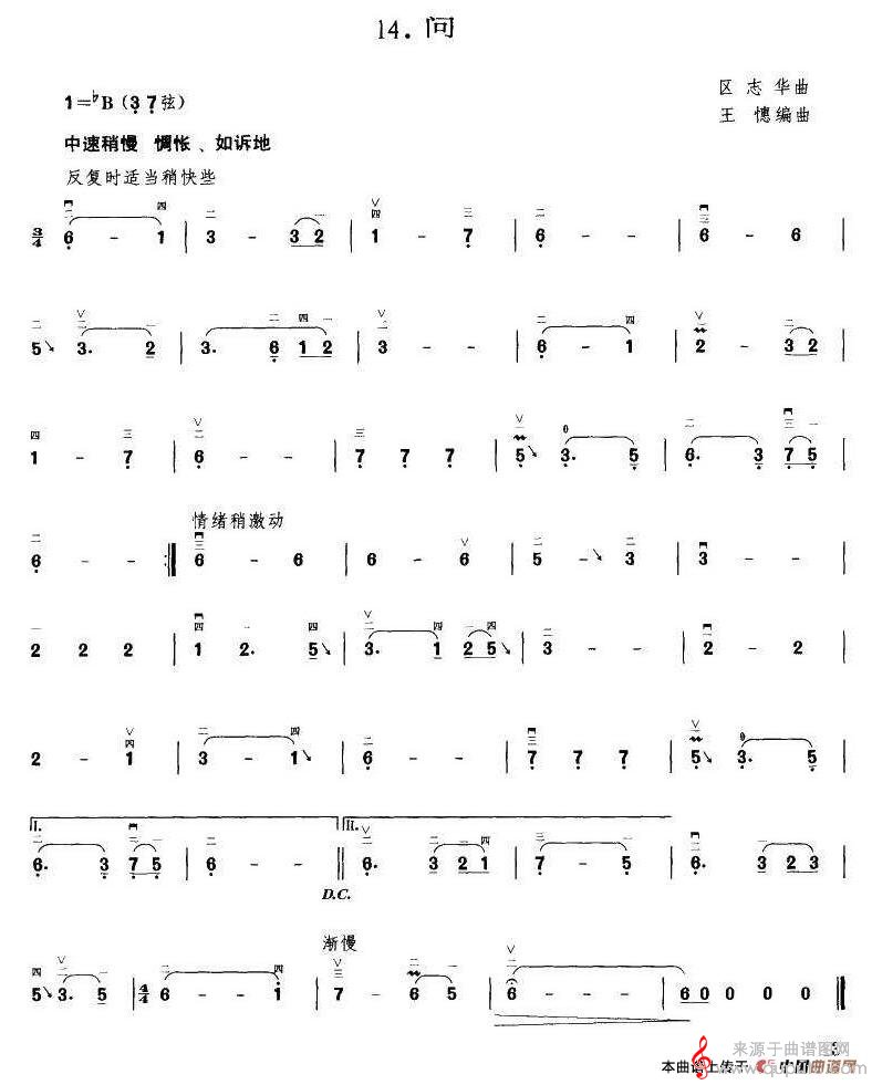 曲谱图网为您提供问(问顺笛古琴二胡演奏版)找谱子,就上曲谱图网。