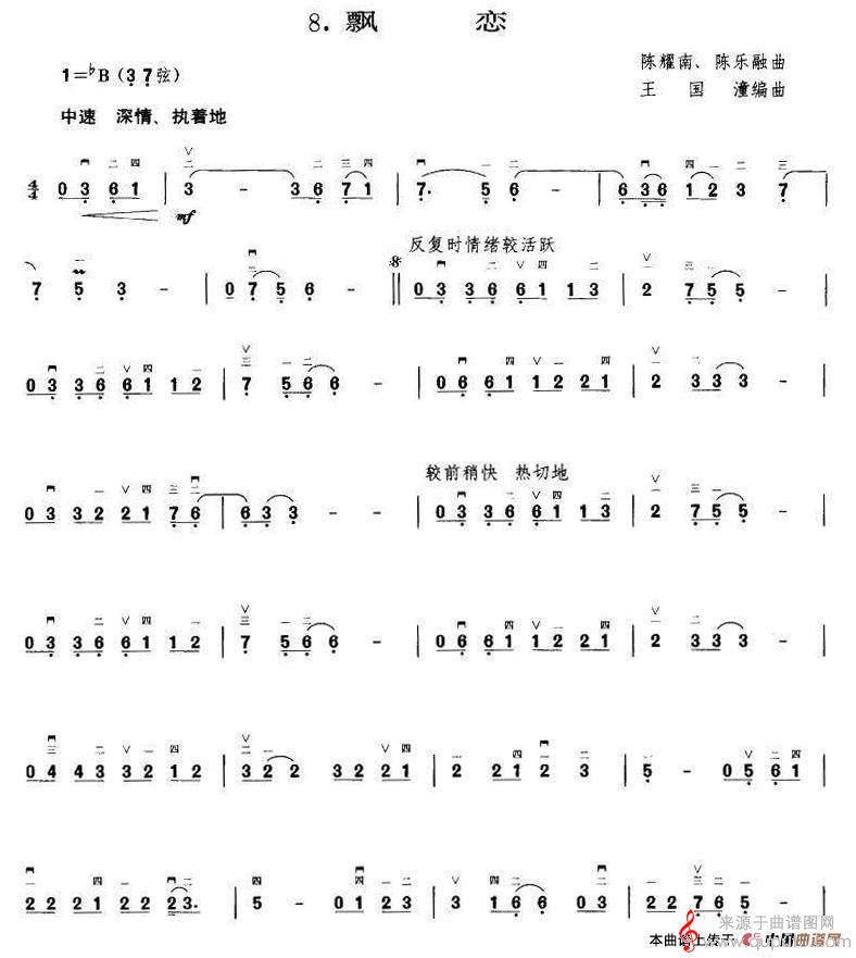 曲谱图网为您提供飘恋(飘恋竹笛葫芦丝二胡乐器演奏歌曲完整版简谱)找谱子,就上曲谱图网。