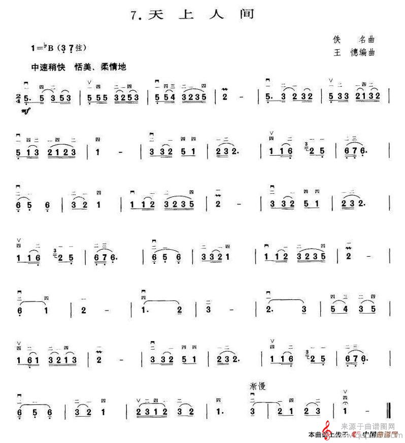 曲谱图网为您提供天上人间(天上人间二胡独奏简谱)找谱子,就上曲谱图网。
