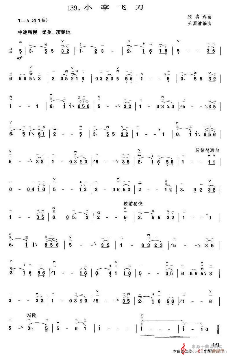 曲谱图网为您提供小李飞刀(小李飞刀洞箫古筝二胡演奏版简谱)找谱子,就上曲谱图网。