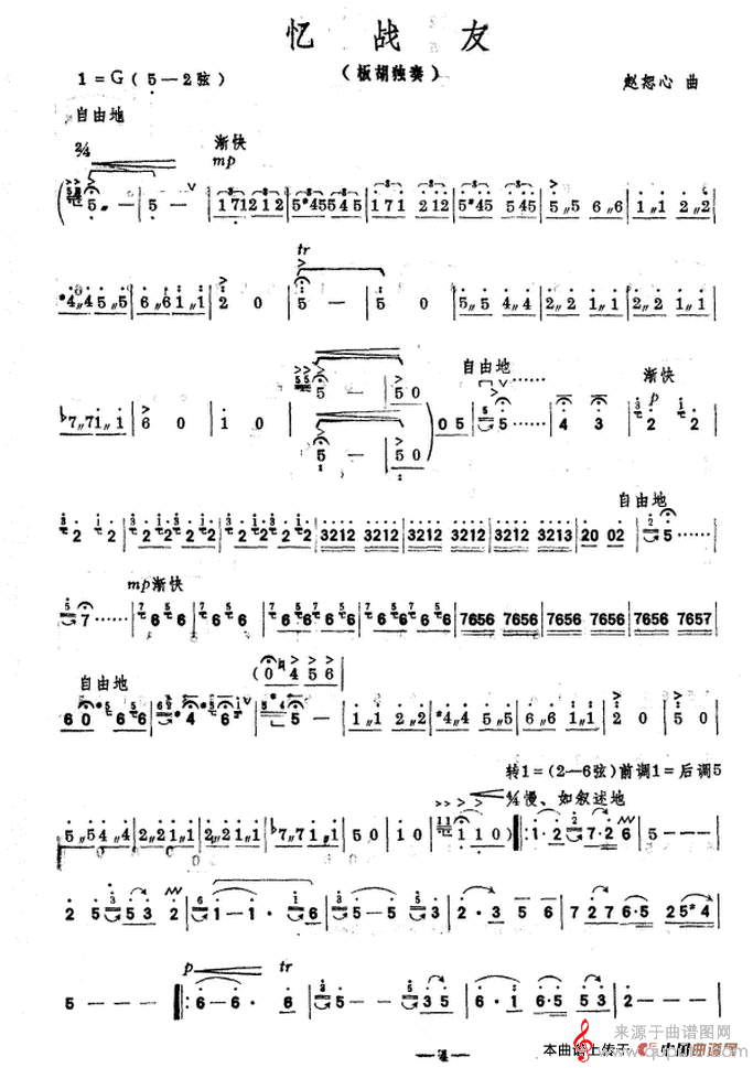 曲谱图网为您提供忆战友简谱(忆战友板胡独奏歌曲版)找谱子,就上曲谱图网。