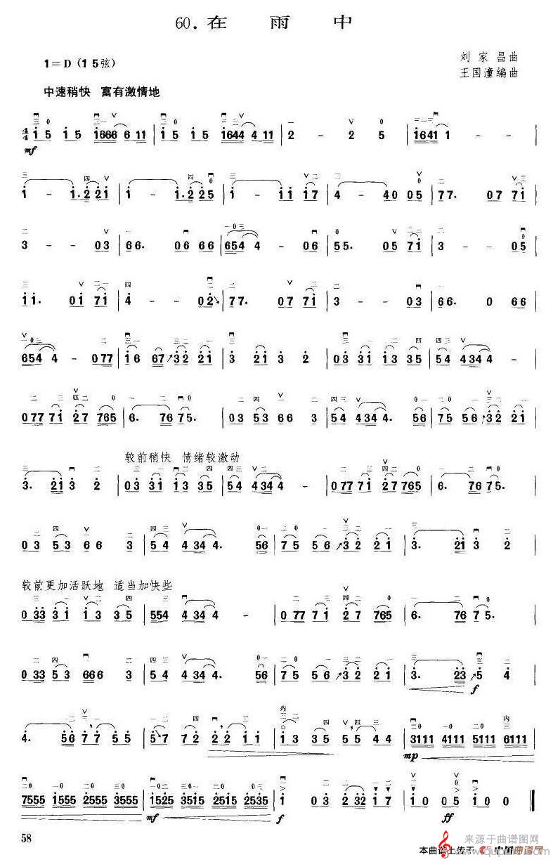曲谱图网为您提供在雨中(在雨中萨克斯电子琴二胡演奏版)找谱子,就上曲谱图网。
