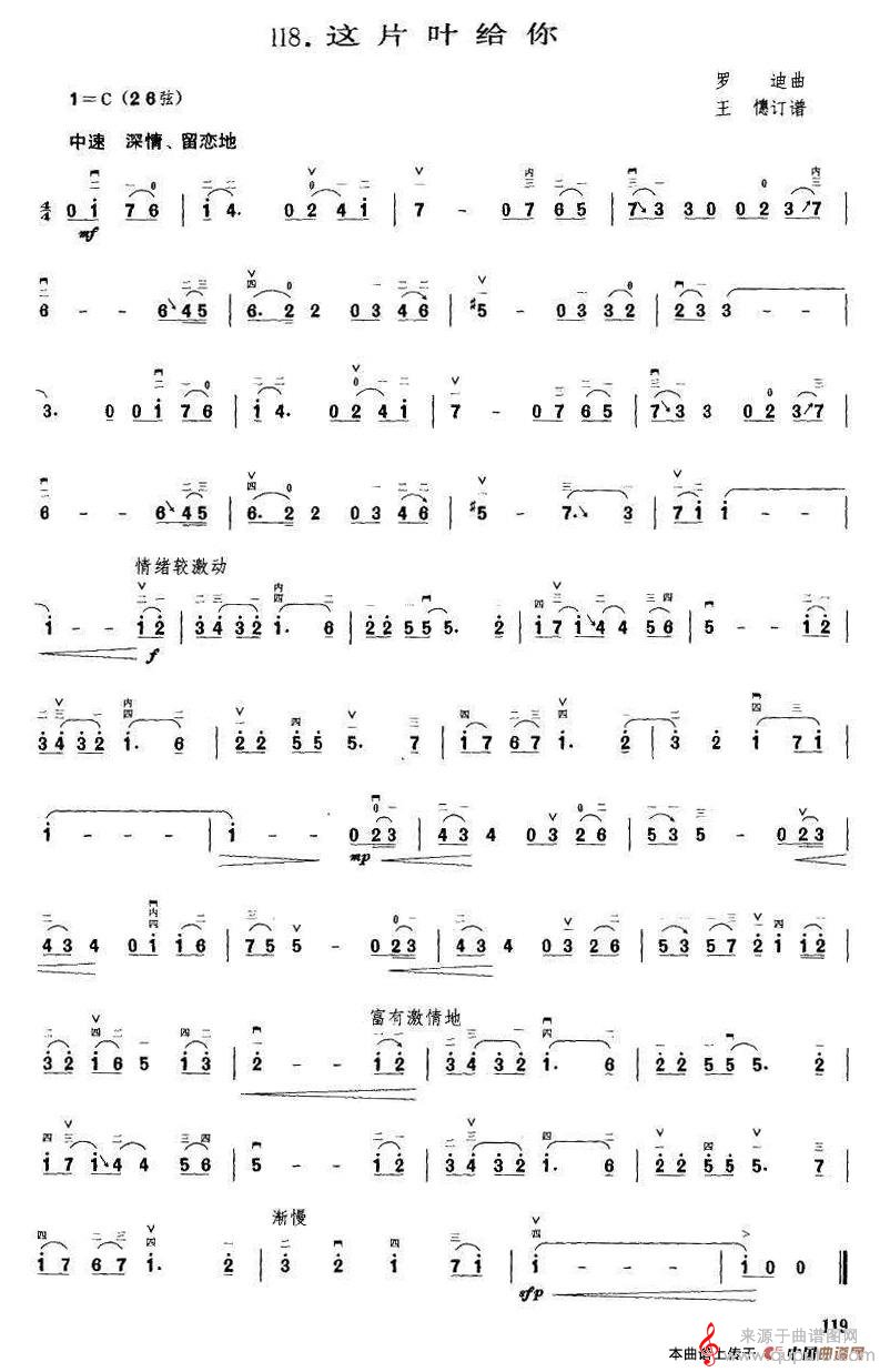 曲谱图网为您提供这片叶给你简谱(这片叶给你口琴二胡演奏歌曲版)找谱子,就上曲谱图网。