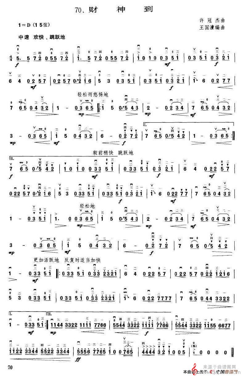 曲谱图网为您提供财神到简谱(财神到古筝电子琴二胡演奏版简谱)找谱子,就上曲谱图网。