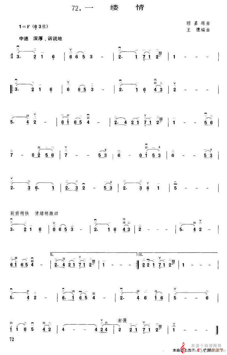 曲谱图网为您提供一缕情简谱(一缕情二胡演奏歌曲版)找谱子,就上曲谱图网。