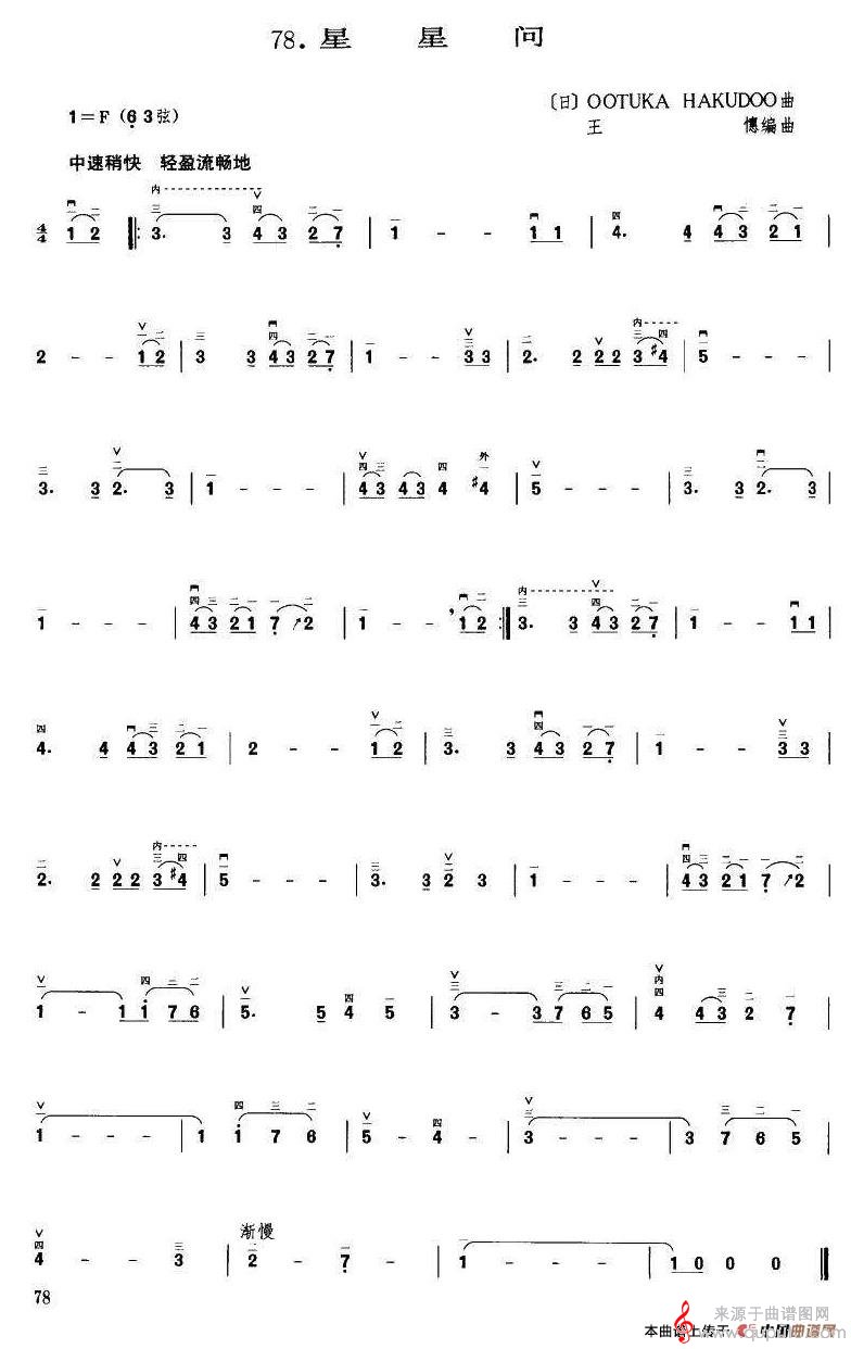 曲谱图网为您提供星星问(星星问胡琴乐器演奏歌曲简谱)找谱子,就上曲谱图网。