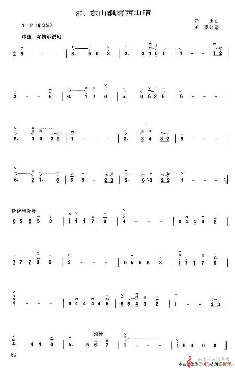 曲谱图网为您提供东山飘雨西山晴(东山飘雨西山晴竹笛二胡演奏名曲完整版简谱)找谱子,就上曲谱图网。