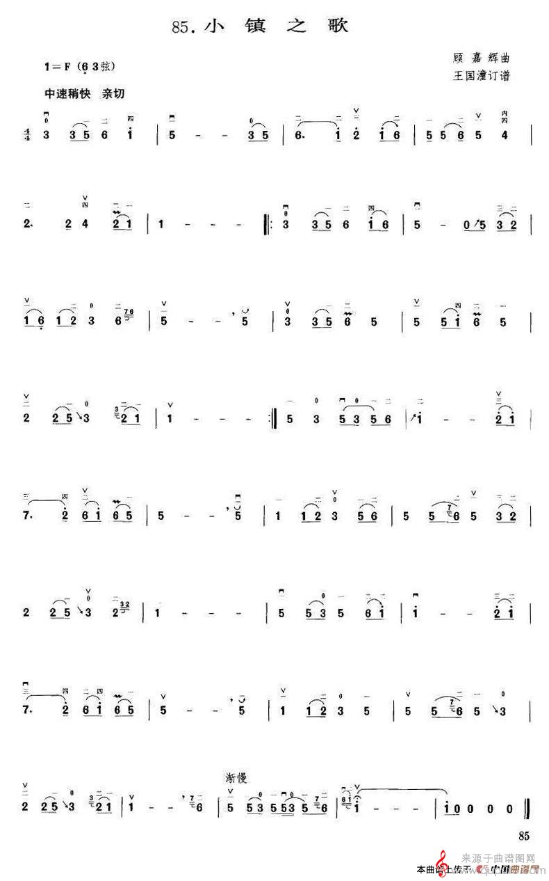 曲谱图网为您提供小镇之歌歌曲简谱(小镇之吉他二胡器乐合奏版)找谱子,就上曲谱图网。