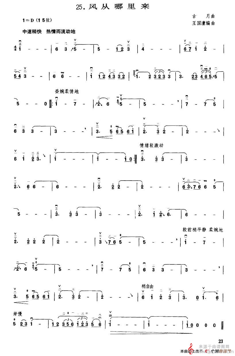 曲谱图网为您提供风从哪里来简谱(风从哪里来排箫胡琴乐器独奏版)找谱子,就上曲谱图网。