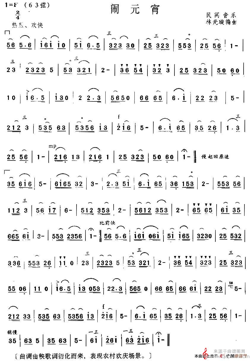 曲谱图网为您提供闹元宵(闹元宵二胡独奏版)找谱子,就上曲谱图网。