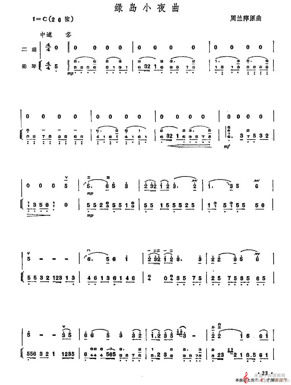 绿岛小夜曲曲谱(绿岛小夜曲二胡独奏+扬琴伴奏简谱)