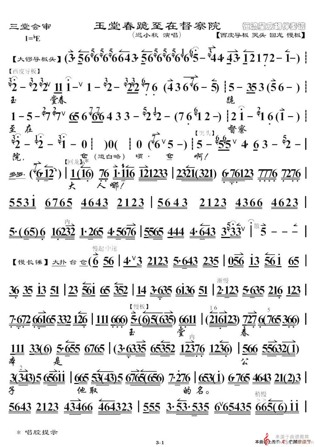 曲谱图网为您提供玉堂春跪至在督察院(玉堂春跪至在督察院二胡伴奏版)找谱子,就上曲谱图网。