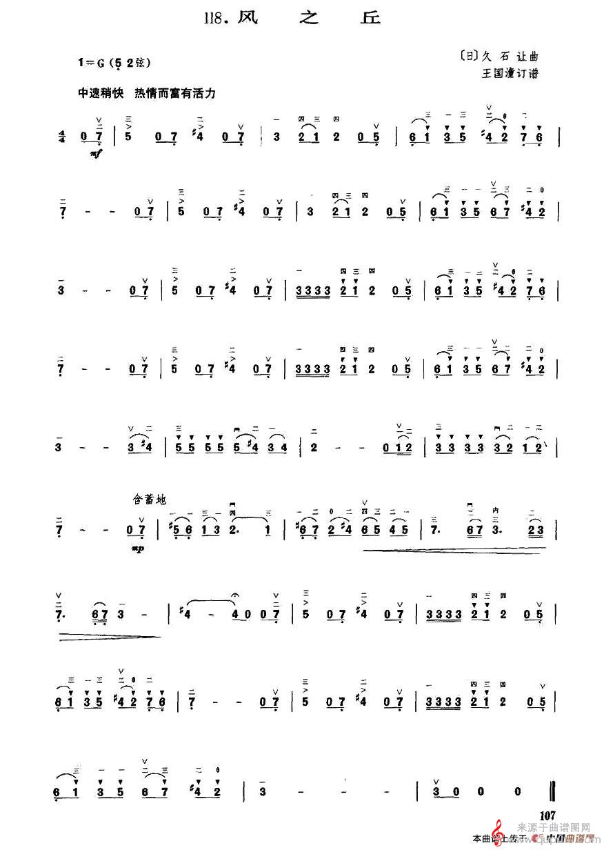 曲谱图网为您提供风之丘(风之丘古典吉他胡琴乐器独奏歌曲版)找谱子,就上曲谱图网。