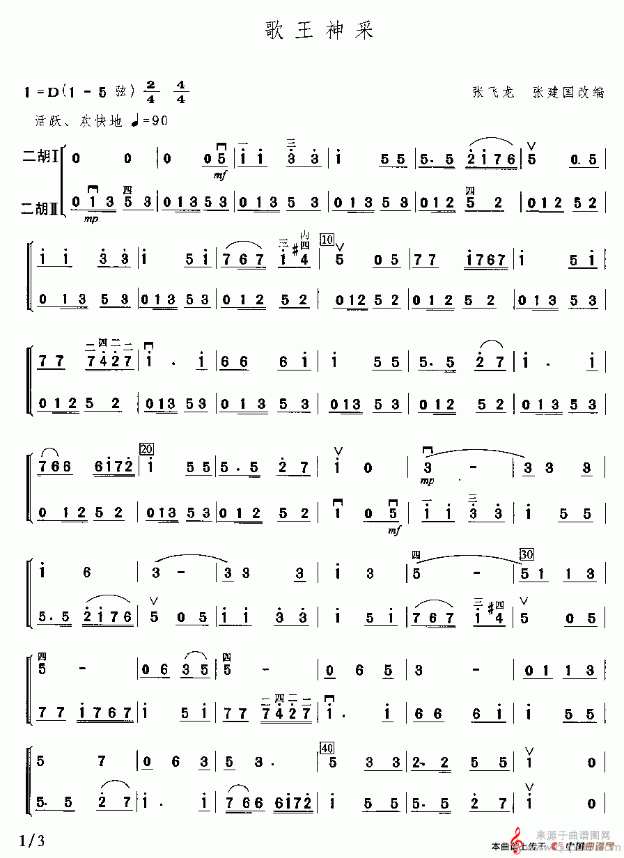 歌王神采(歌王神采胡琴演奏歌曲版简谱)