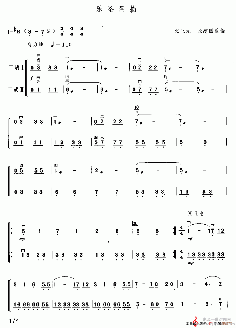 乐圣素描简谱(乐圣素描胡琴乐曲曲谱)
