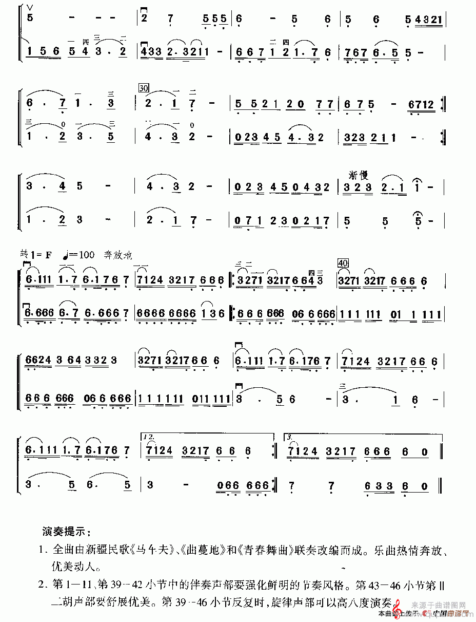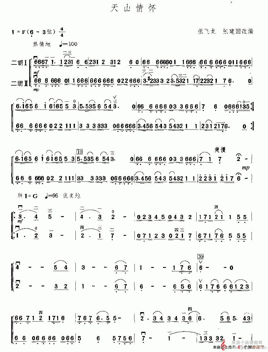 天山情怀简谱(天山情怀二胡独奏乐曲版)