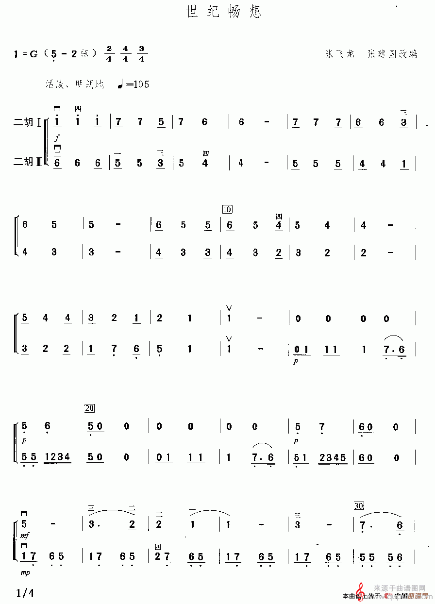 世纪畅想(世纪畅想胡琴二重奏简谱)