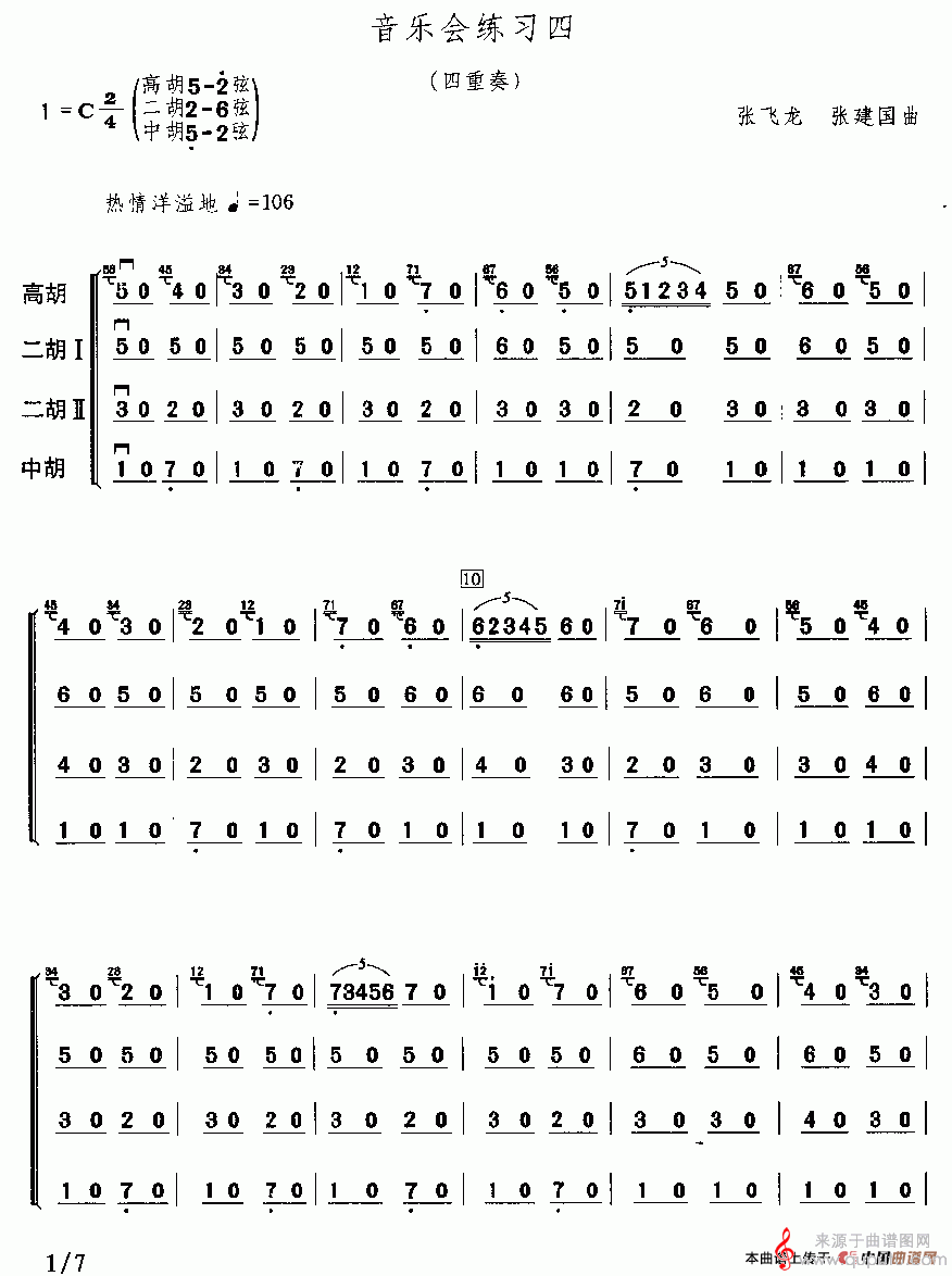 曲谱图网为您提供音乐会练习四(音乐会练习四胡琴乐器演奏歌曲版)找谱子,就上曲谱图网。