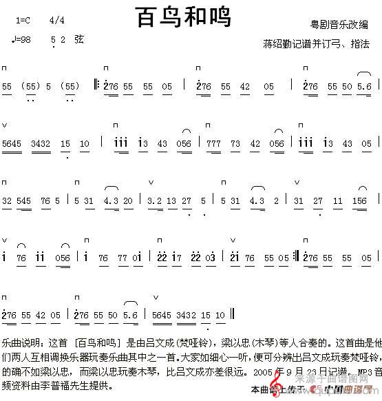 曲谱图网为您提供百鸟和鸣(百鸟和鸣口笛二胡演奏歌曲简谱)找谱子,就上曲谱图网。