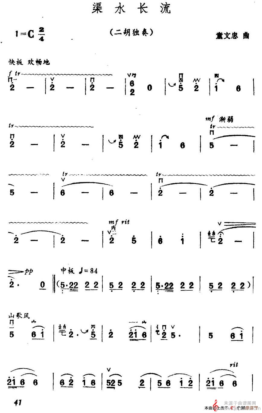 曲谱图网为您提供渠水长流(渠水长流二胡乐器独奏歌曲版)找谱子,就上曲谱图网。