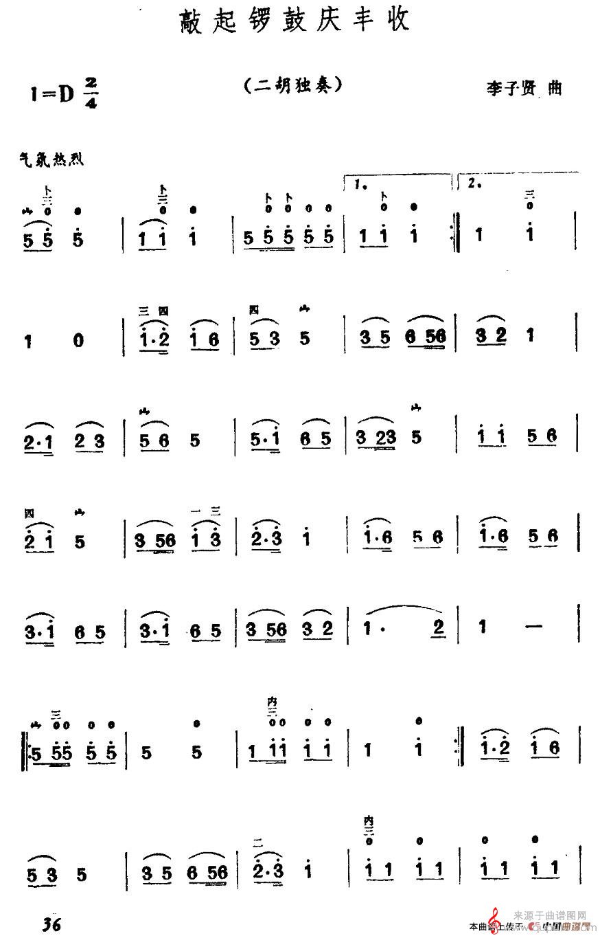 曲谱图网为您提供欢庆锣鼓庆丰收简谱(欢庆锣鼓庆丰收二胡器乐合奏版)找谱子,就上曲谱图网。