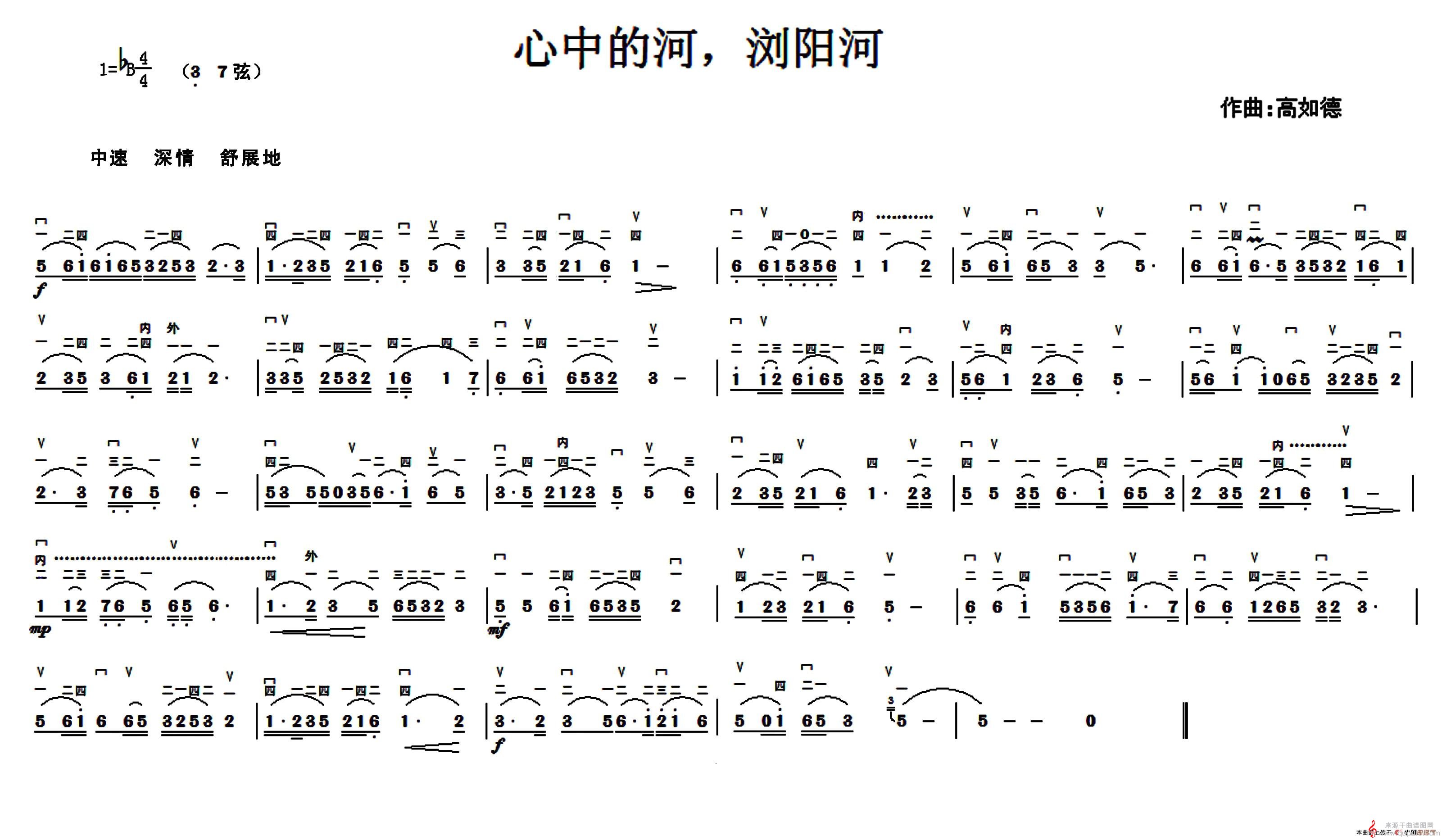 曲谱图网为您提供心中的河,浏阳河(心中的河,浏阳河二胡独奏曲简谱)找谱子,就上曲谱图网。