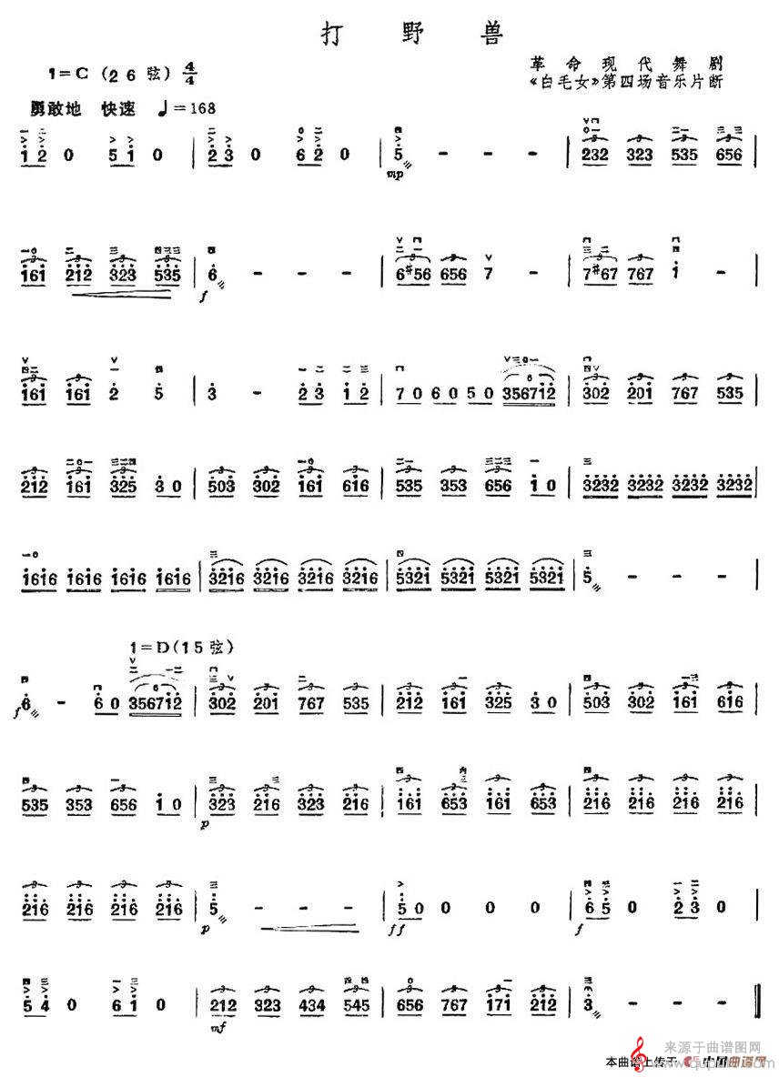 曲谱图网为您提供打野兽(打野兽胡琴乐器演奏歌曲完整版简谱)找谱子,就上曲谱图网。