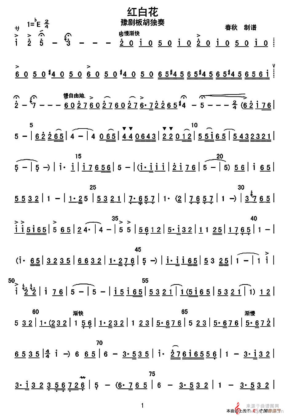 曲谱图网为您提供红白花(红白花豫剧板胡独奏歌曲版)找谱子,就上曲谱图网。
