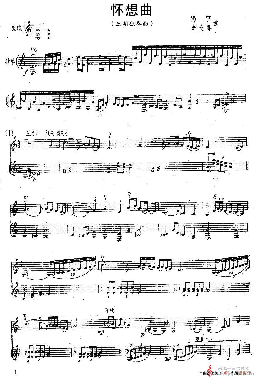 曲谱图网为您提供怀想曲曲谱(怀想曲三胡+扬琴合奏歌曲版简谱)找谱子,就上曲谱图网。