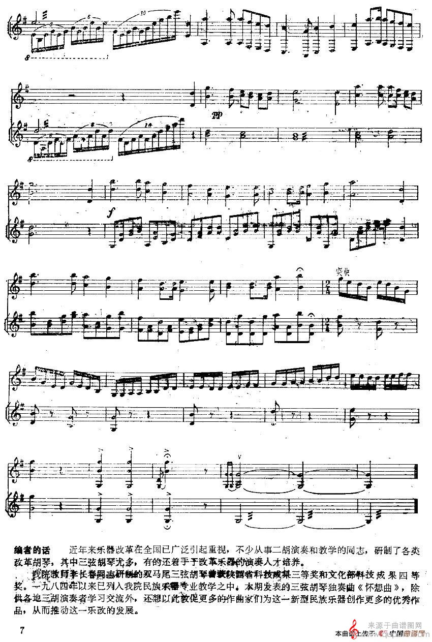 怀想曲曲谱(怀想曲三胡+扬琴合奏歌曲版简谱)
