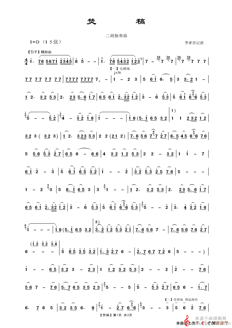 曲谱图网为您提供焚稿(焚稿越胡二胡合奏歌曲版简谱)找谱子,就上曲谱图网。