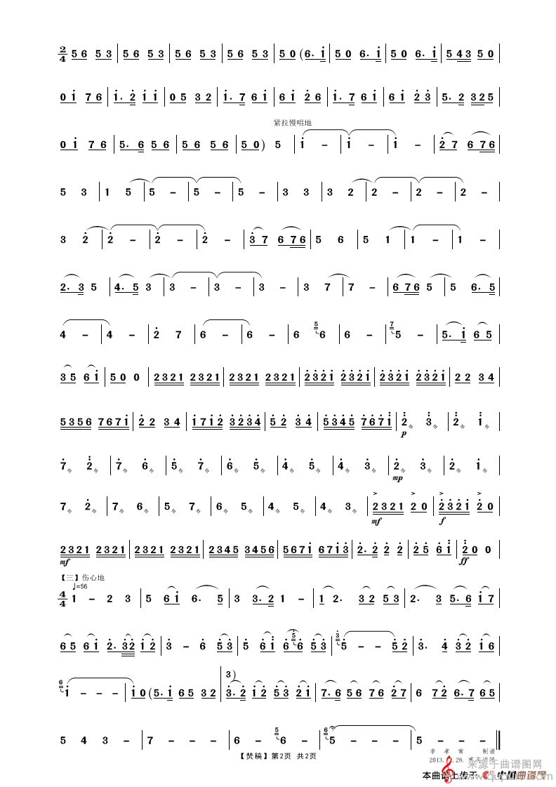 焚稿(焚稿越胡二胡合奏歌曲版简谱)