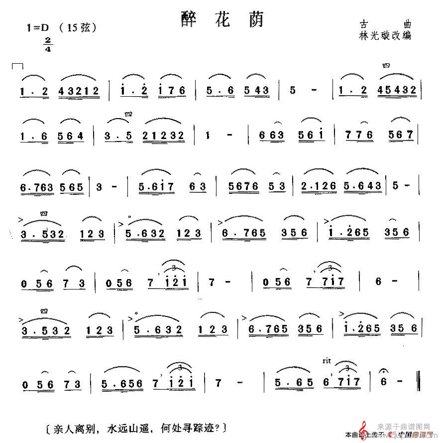 曲谱图网为您提供醉花荫(醉花荫竹笛古筝胡琴乐器演奏版)找谱子,就上曲谱图网。