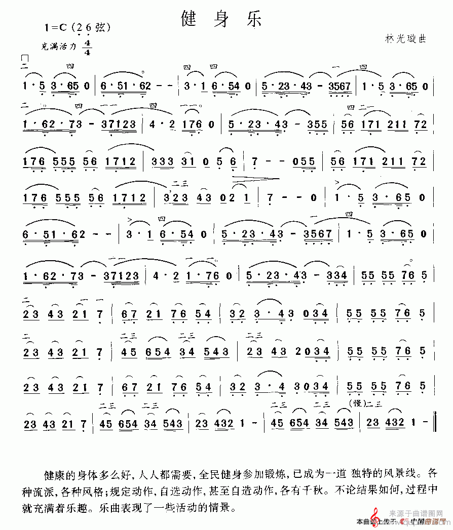 曲谱图网为您提供健身乐(健身乐胡琴乐器演奏歌曲版)找谱子,就上曲谱图网。