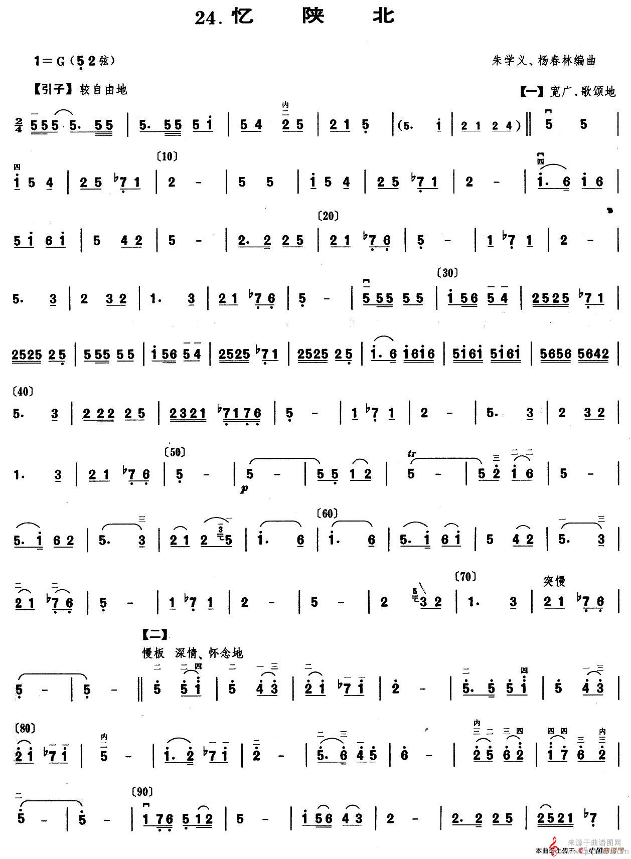 曲谱图网为您提供忆陕北(忆陕北二胡独奏简谱)找谱子,就上曲谱图网。