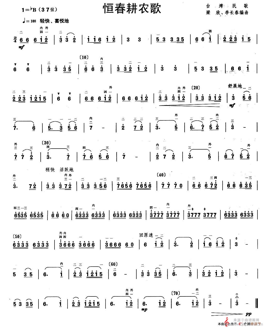 恒春耕农歌民乐简谱(恒春耕农歌古筝二胡演奏歌曲简谱)