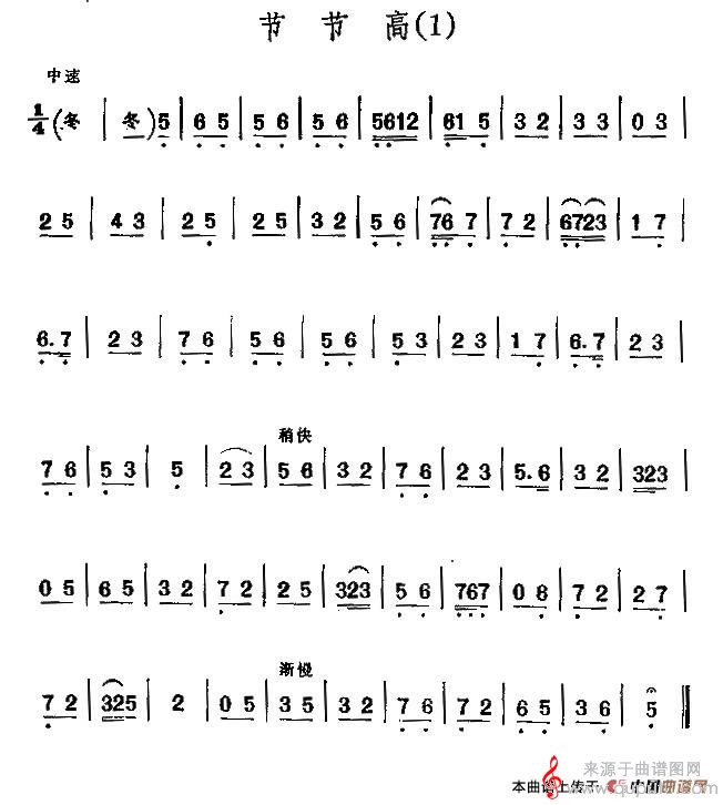 曲谱图网为您提供京剧二黄曲牌:节节高(京剧二黄曲牌:节节高二胡演奏简谱)找谱子,就上曲谱图网。