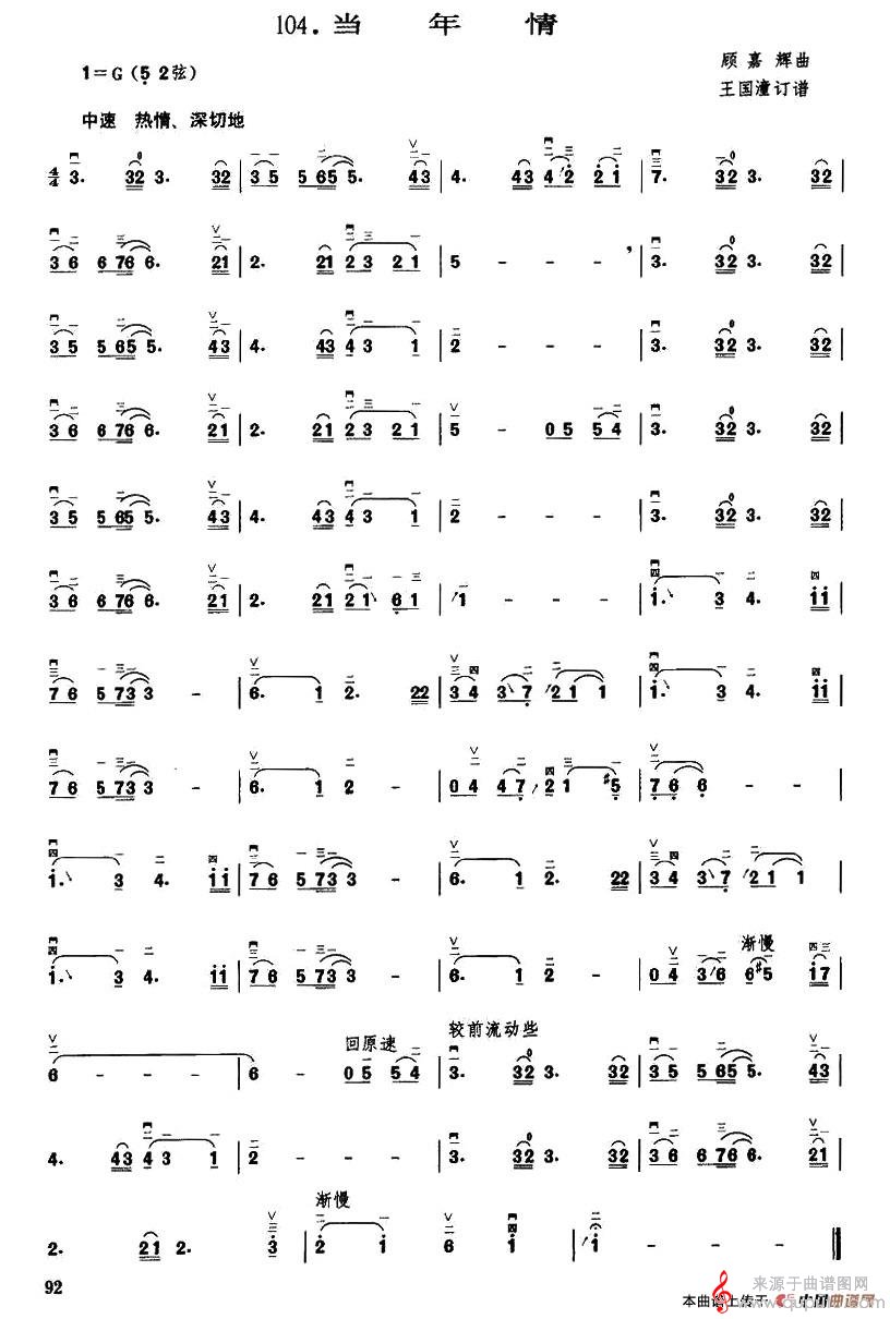 曲谱图网为您提供当年情(当年情电子琴竹笛二胡乐器演奏歌曲版)找谱子,就上曲谱图网。