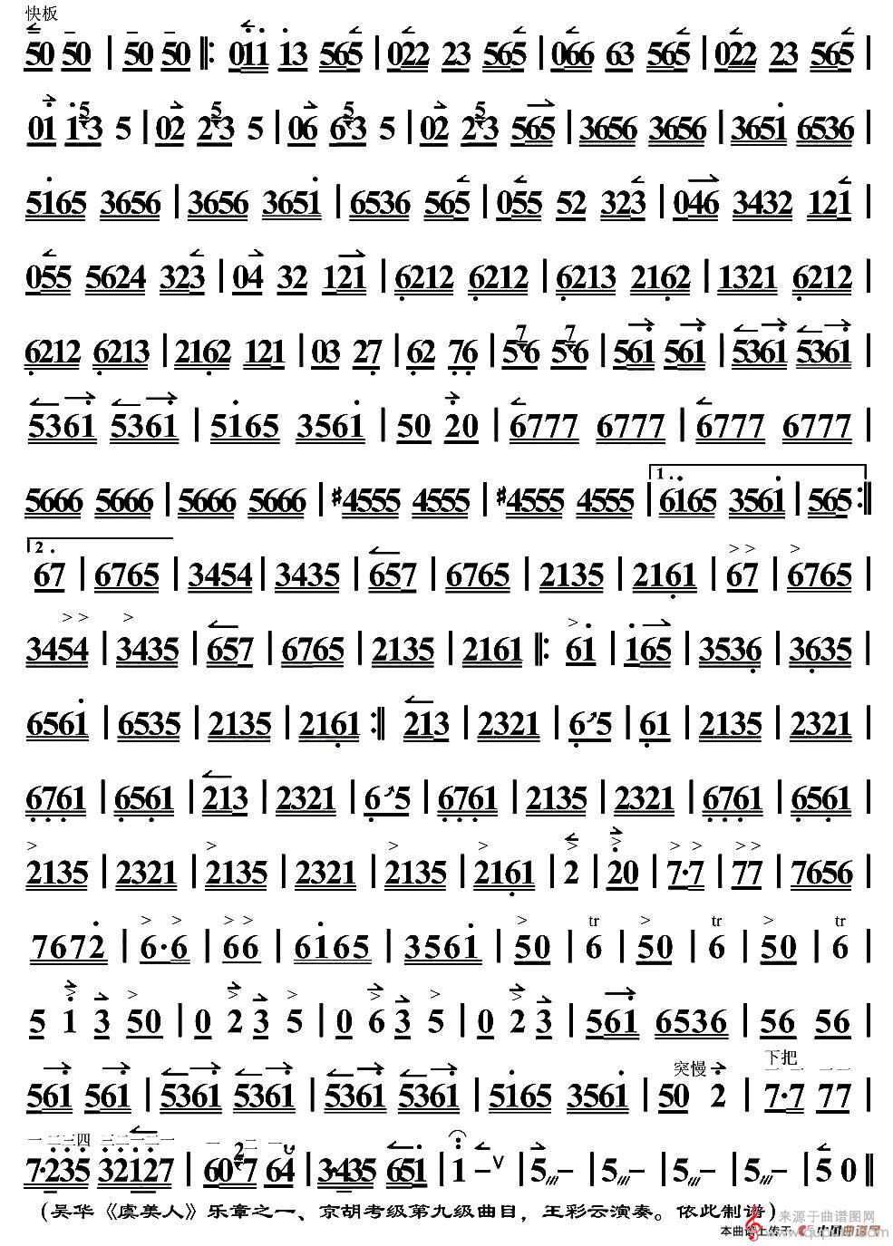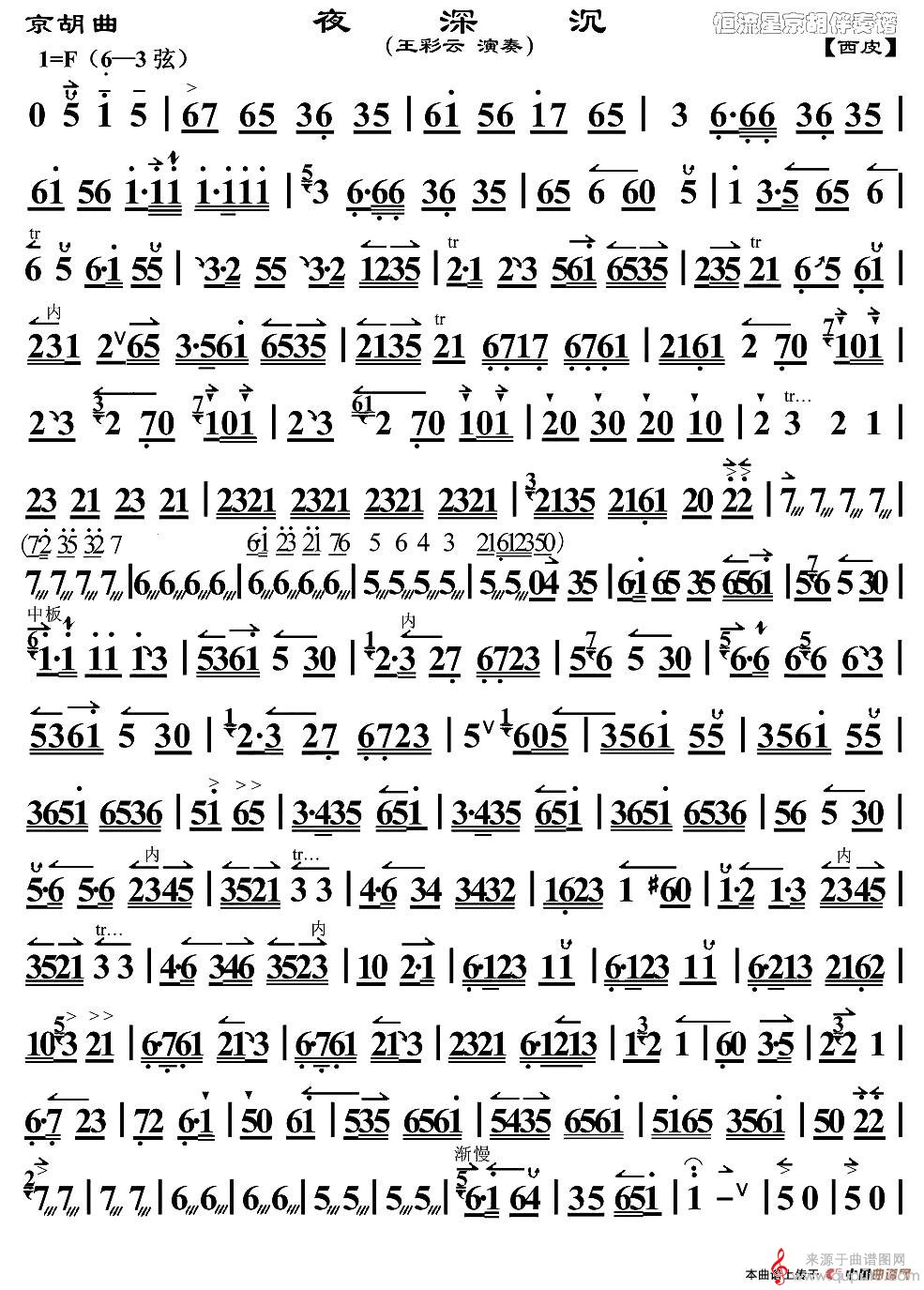 曲谱图网为您提供京胡曲:夜深沉(京胡曲:夜深沉 王彩云演奏版 二胡演奏简谱)找谱子,就上曲谱图网。