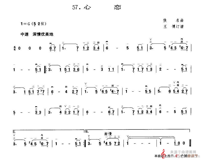 心恋简谱(心恋电子琴手风琴二胡乐器演奏歌曲版)