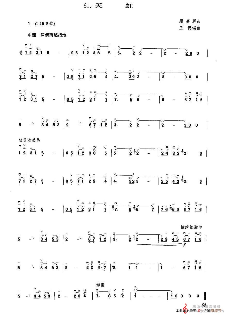天虹简谱(天虹二胡乐器演奏歌曲曲谱)